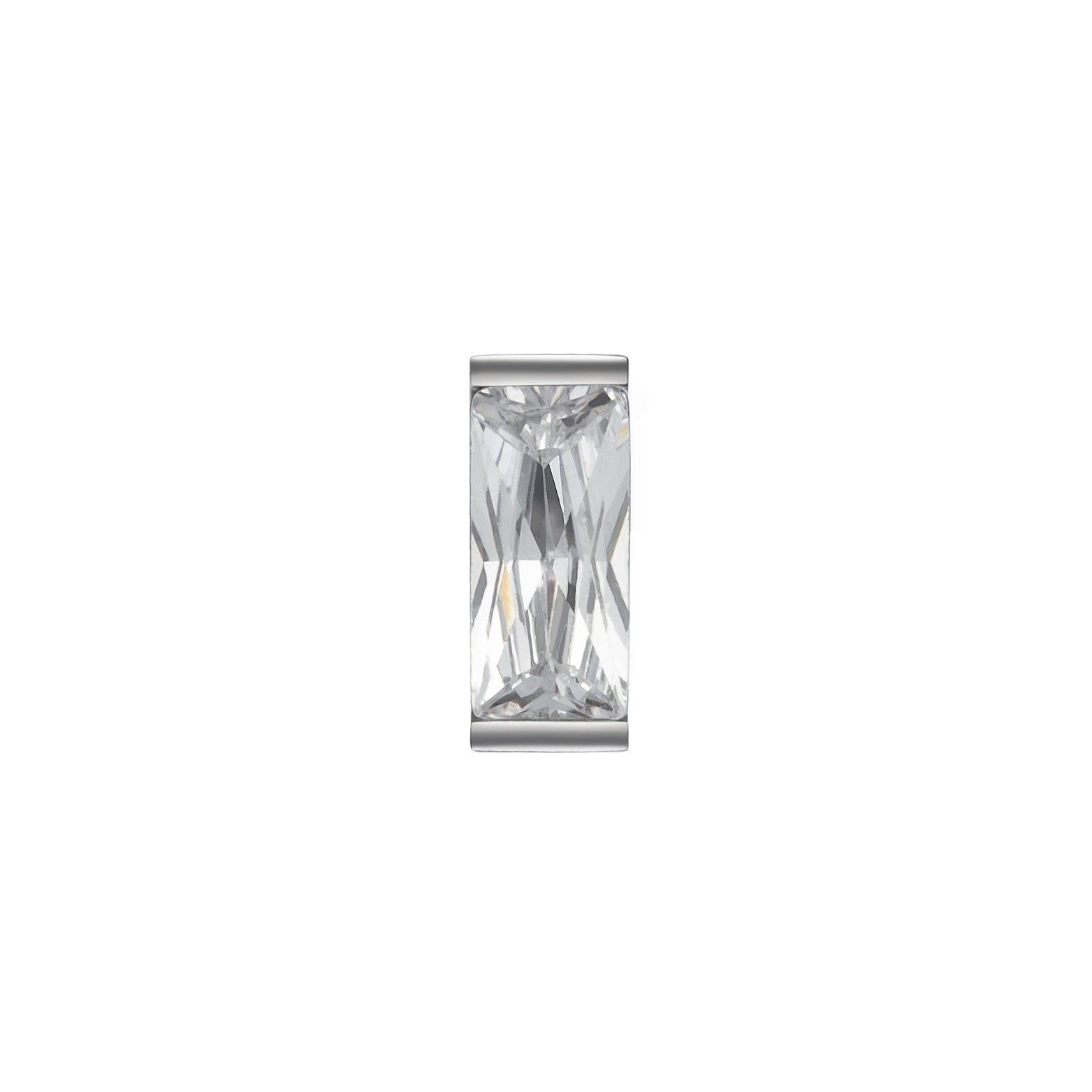 Dieser Aufsatz mit präzise geschliffenem Baguette-Cut-Zirkonia setzt ein minimalistisches Statement. Die schlichte Fassung aus hochwertigem Material lässt den Stein im Mittelpunkt stehen und bringt seine geometrische Form perfekt zur Geltung.