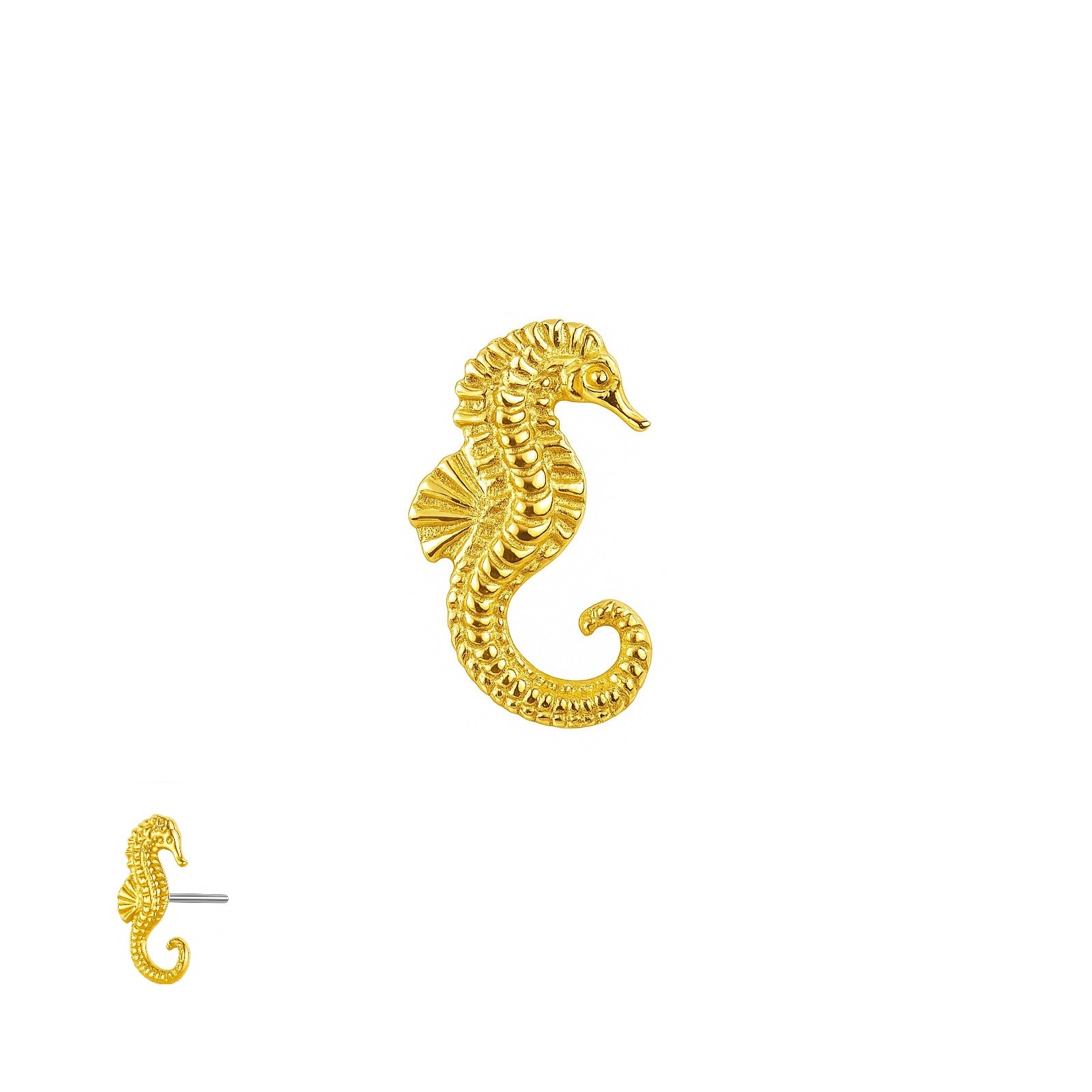 Dieses Seepferdchen besteht aus 14 Karat massivem Gelbgold und ist hypoallergen, ideal für empfindliche Haut. Erleben Sie den luxuriösen, eleganten Look dieses exklusiven Schmuckstücks und holen Sie sich mit diesem bezaubernden Accessoire ein Stück Meer nach Hause.